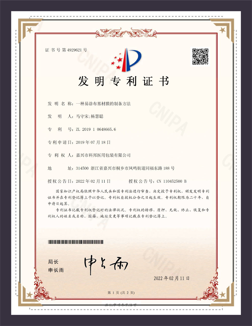 公司現(xiàn)有各種國內(nèi)先進(jìn)的生產(chǎn)設(shè)備幾十臺,如高速印刷機(jī)、制袋機(jī)、無溶劑薄膜復(fù)合機(jī)、紙張涂布機(jī)、在線模切機(jī)、分切機(jī)、數(shù)碼裁切機(jī)等以及多條產(chǎn)品生產(chǎn)流水線;為保證產(chǎn)品質(zhì)量持續(xù)穩(wěn)定配套購進(jìn)了產(chǎn)品在線檢測系統(tǒng)、環(huán)氧乙烷滅菌器、高溫蒸汽滅菌器、、拉力檢測儀、紙張透氣儀、紫外線分析儀、熱封試驗儀、微粒檢測儀、細(xì)菌培養(yǎng)箱等多種各式檢測設(shè)備;公司現(xiàn)有廠房設(shè)備設(shè)計預(yù)計年產(chǎn)值達(dá)2億多元,擁有日產(chǎn)滅菌包裝袋500萬只的能力;同時產(chǎn)品種類多、覆蓋面廣,廣泛運(yùn)用于一類、二類、三類醫(yī)療器械和醫(yī)療機(jī)構(gòu)的各式滅菌包裝產(chǎn)品;公司擁有醫(yī)用包裝從業(yè)20多年的技術(shù)人員,可根據(jù)客戶要求提供開發(fā)、設(shè)計、特殊定制等要求的一站式包裝方案,大限度地滿足客戶需要;自公司成立以來秉承專注、專業(yè)、專一、盡心、持續(xù)改進(jìn)的企業(yè)信念,服務(wù)了近300多家國內(nèi)外客戶,產(chǎn)品遠(yuǎn)銷100多個國家;同時公司也注重人才培養(yǎng)和產(chǎn)品生產(chǎn)技術(shù)的研發(fā),現(xiàn)已陸續(xù)取得了發(fā)明和實用新型專利20多個,獲評國家高新技術(shù)企業(yè)稱號。相信科邦公司以專業(yè)、專注、辛勤和努力,會成為您可信賴的朋友。